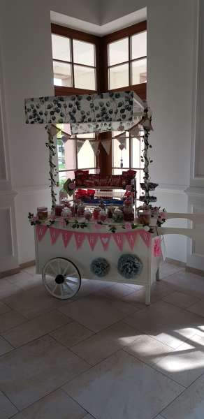 Stell dir vor, wie eure Gäste staunen, wenn sie an unserem charmanten Wagen/Regal vorbeigehen und sich eine süße Erinnerung mitnehmen. Perfekt für Naschkatzen egal ob groß oder klein und als Highlight auf eurer Feier!