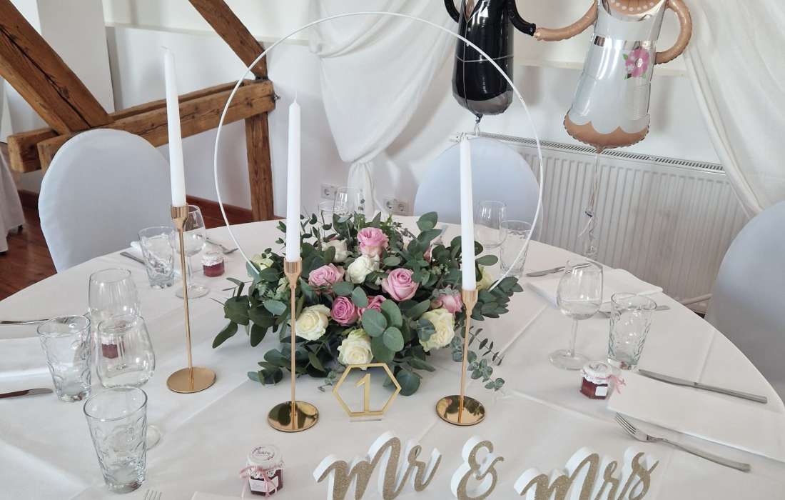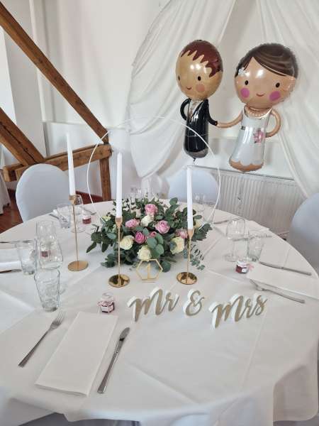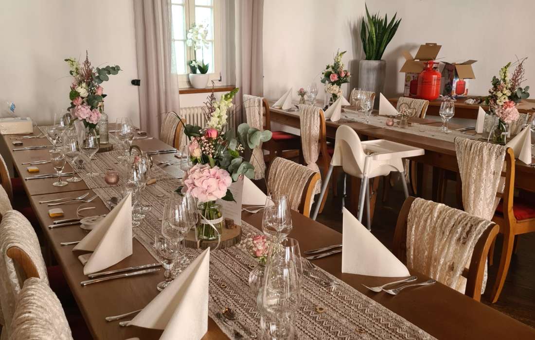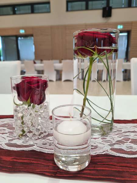 Nichts ist besser geeignet, als eine persönlich arrangierte Tischdekoration, um Ihren Gästen eine besondere Atmosphäre zu bieten. Egal ob es sich dabei um Ihre Lieblingsblumen oder Ihre Lieblingsfarbe handelt, in jedem Fall, finden wir für Sie die perfekte, ganz persönliche Tisch- und Saaldekoration.