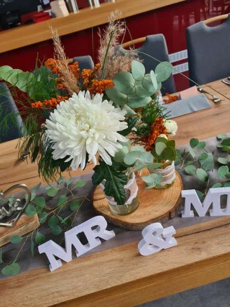 Unser Familienbetrieb bietet Ihnen eine große Auswahl an Dekorationsarrangements für Tisch und Saal – bis ins Detail und Ihrer Vorstellung zu jeder Preisspanne. Ganz gleich zu welchem Anlass, Sie können darauf vertrauen, dass wir Ihre Dekoration individuell passend zu und mit Ihnen wählen.