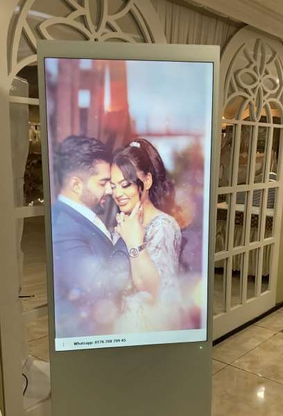 Wir nutzen modernste Technologie, um Ihre schönsten Momente auf lebendigen digitalen Bildschirmen zu präsentieren und so eine unvergleichliche Atmosphäre zu schaffen.