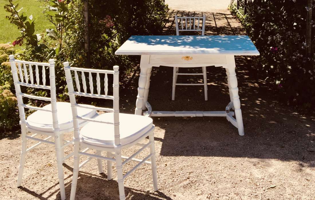 Nicht nur tolle Stühle, sondern auch von Hand gefertigte Altholztische und wunderschöne Dekoration für Tisch und Raum runden unser Sortiment ab.
