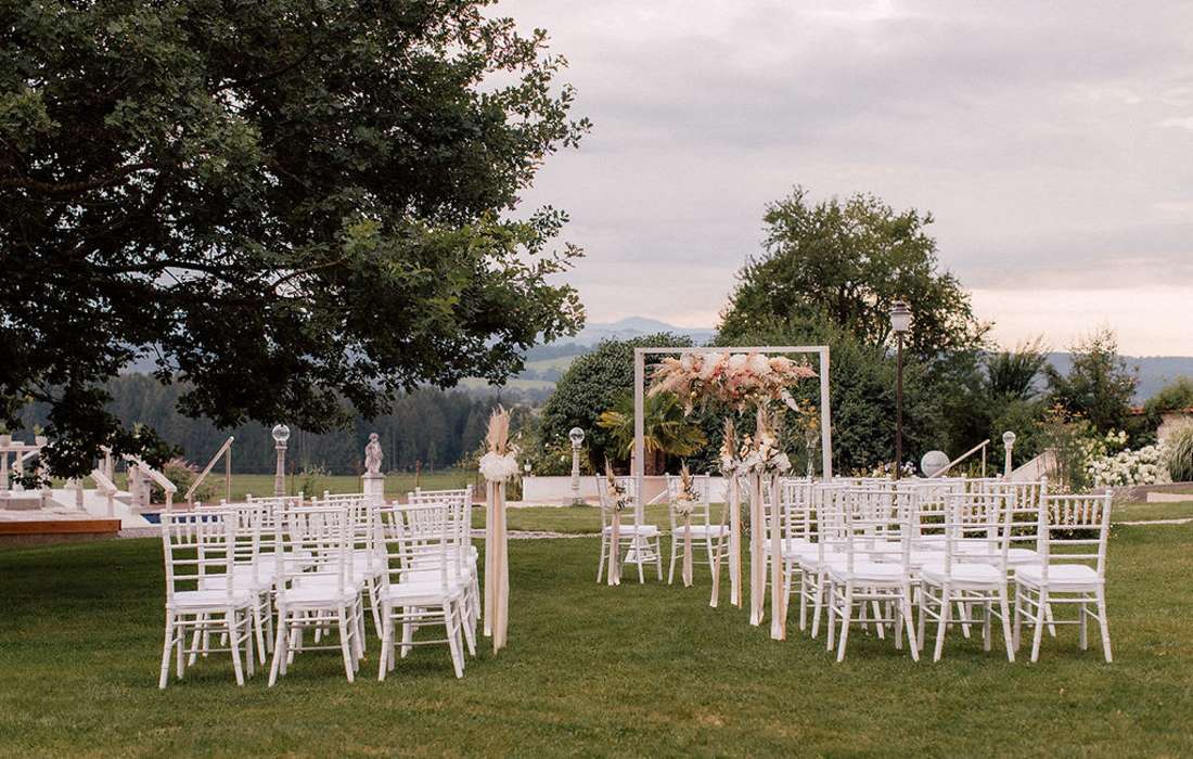Zudem vermieten wir die eleganten Chiavari Stühle in weiß und gold.