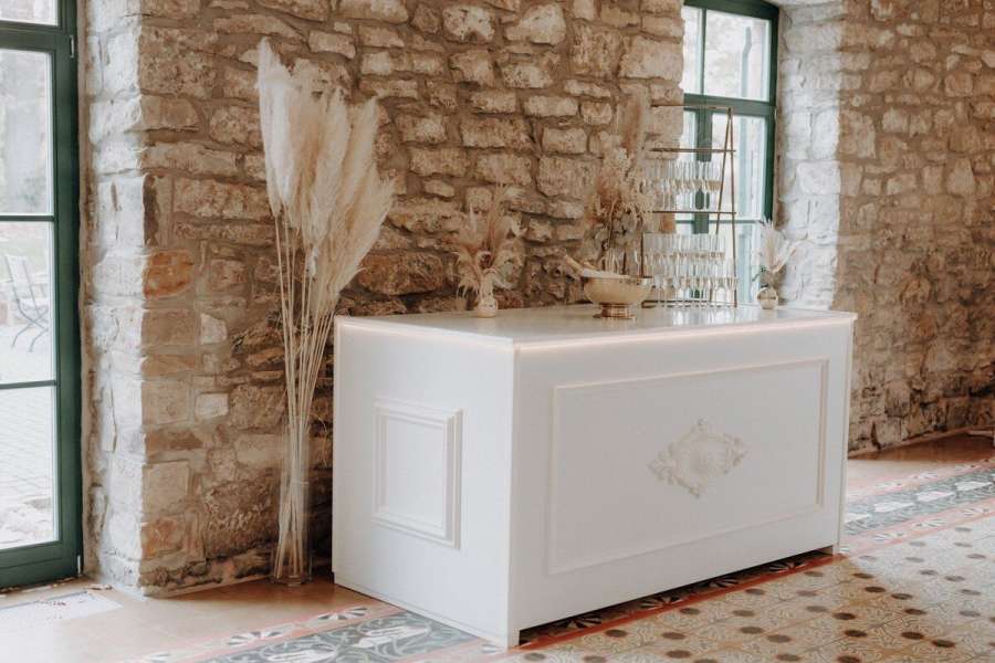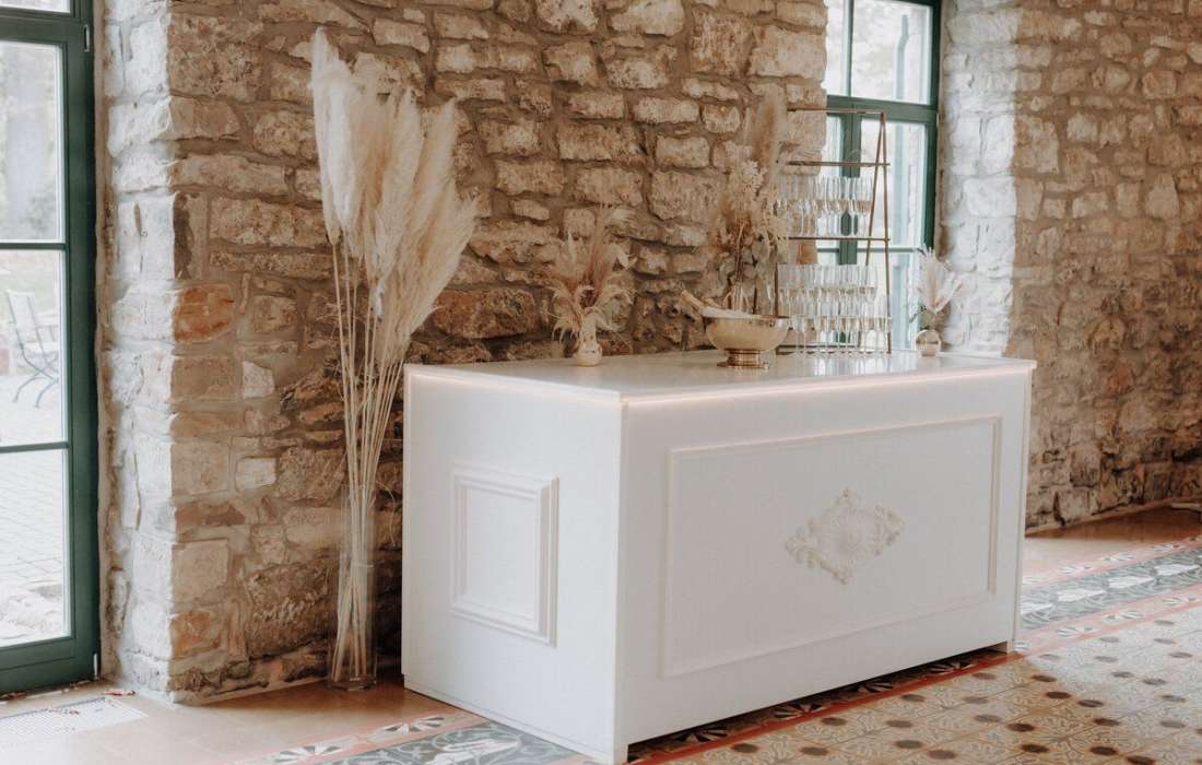 Wir verleihen eine wunderschöne weiße Bar die für viele Feierlichkeiten einsetzbar ist, z.B. für einen Sektempfang an der Hochzeitsfeier oder klassisch nach dem Standesamt.