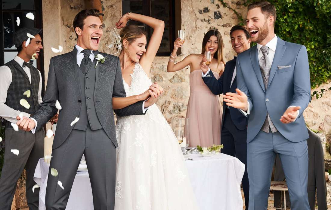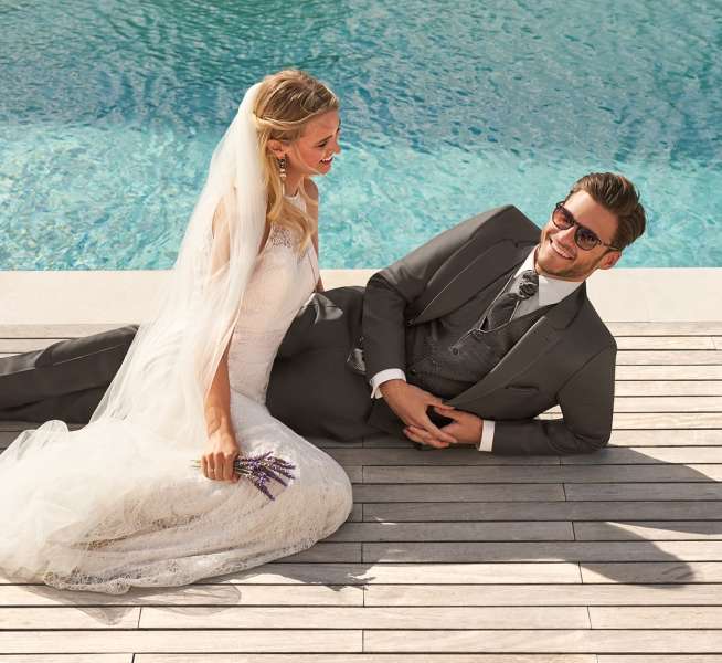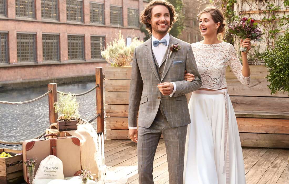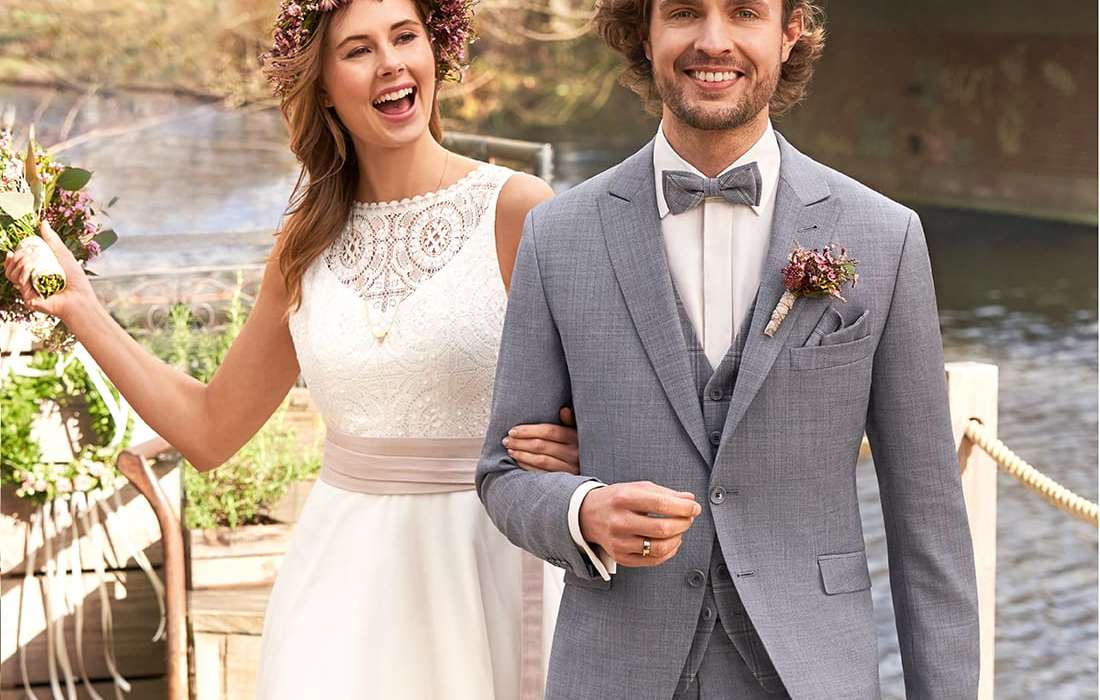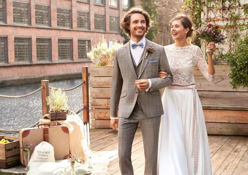 Durch die 4 Brautstudios in der #HOCHZEITSSTRASSE kennen wir die aktuellen Brautkleider und die Anzugtypen, die optimal zum Brautkleid passen. Hat eine Braut in den Brautstudios der #HOCHZEITSSTRASSE das Brautkleid gekauft, so können wir den Bräutigam optimal zum Brautkleid abstimmen, ohne das einer vom Anderen erfährt was er/sie zur Hochzeit trägt. Haben beide Ihr Hochzeitsoutfit bei uns gefunden, bekommen Sie als DANKESCHÖN eine VIP-Family-Shopping-Card.