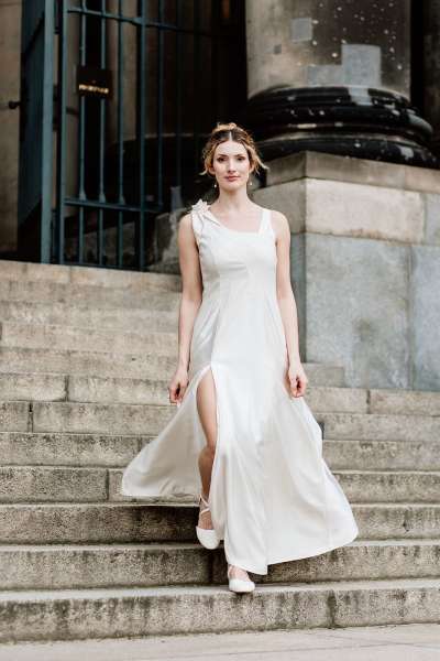 Liebe Braut, ich bin Katharina Zillmer und Modedesignerin mit Atelier in Berlin Pankow. Im gemeinsamen Austausch kreieren wir Deinen ganz persönlichen Entwurf in Form einer Skizze. Auch wenn Du zu Beginn noch keine konkrete Idee hast, berate ich Dich gern. Im Anschluss wird der Entwurf in meinem Atelier mit viel Liebe und hohem Anspruch an Qualität in Material und Verarbeitung realisiert - angefangen beim Maßnehmen, der Konstruktion eines Schnittmusters, der Fertigung eines Probeteils, etwa zwei bis drei Anproben, bis hin zum fertigen Traumkleid.