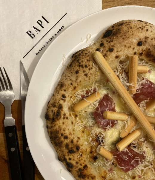 Einzigartig dekorierte neapolitanische Pizzabar, komplettiert zu einem Gänge-Menü durch