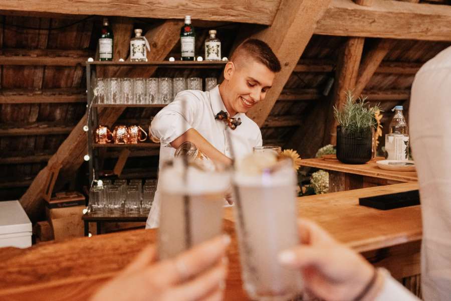 Während du dich zurücklehnen kannst, kümmern wir uns vom Einkauf über Aufbau bis hin zum fertigen Cocktail um alles! Lass uns deine Feier gemeinsam auf ein neues Level bringen.