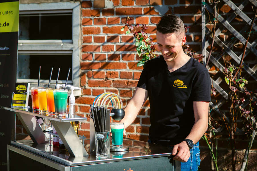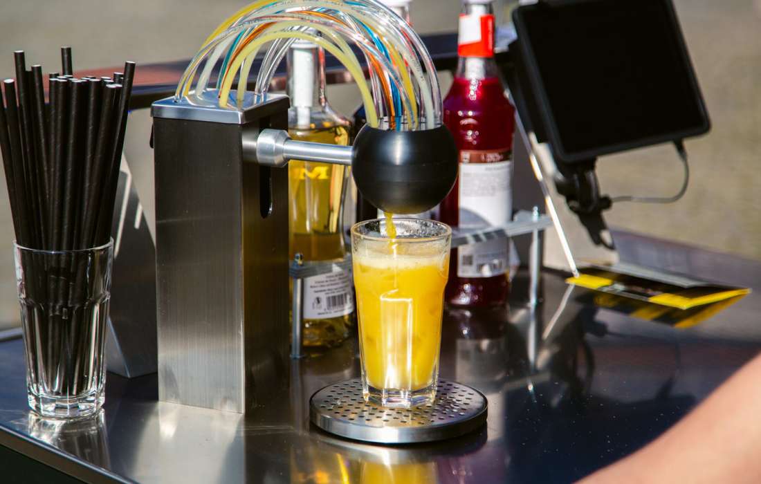 Mit dieser Cocktailanlage können Sie oder einer Ihrer fleißigen Helfer nach einer kurzen Einweisung von uns selbständig Cocktails für Ihre Gäste mixen.