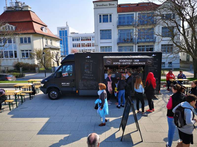 Der Truck funktioniert ganz klassisch als Bar-Truck, Bierwagen, Kaffeemobil oder als Glühwein-Truck in kalten Tagen. Das vorhandene Branding an der Vorderseite des Trucks ist individuell veränderbar, wodurch es sich ganz an Ihre Wünsche und an Ihr Unternehmen anpassen kann.