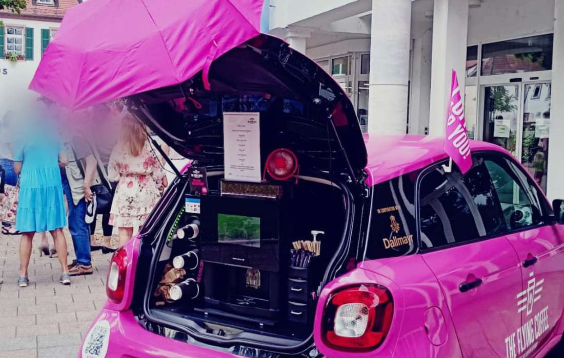 Holt euch unser mobiles Kaffeecatering und gönnt euch Service der Spitzenklasse. Alles, was wir dafür brauchen ist Platz für unser Fahrzeug – und Euren Auftrag.