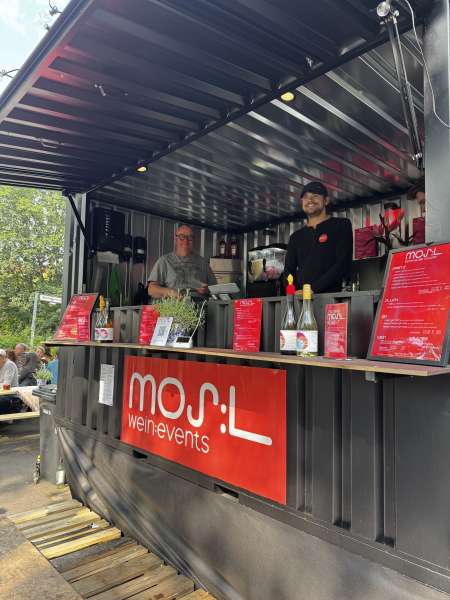 Ausschankcontainer mit individuellem Bar-Konzept, Mosel-Weine aus eigenem Anbau, alkoholfreie Slushies, Signature-Drinks, Bar-Snacks & Mobiliar zubuchbar. Flexibel für Outdoor-Events, freie Trauungen & Abendempfang. Bundesweit buchbar.
