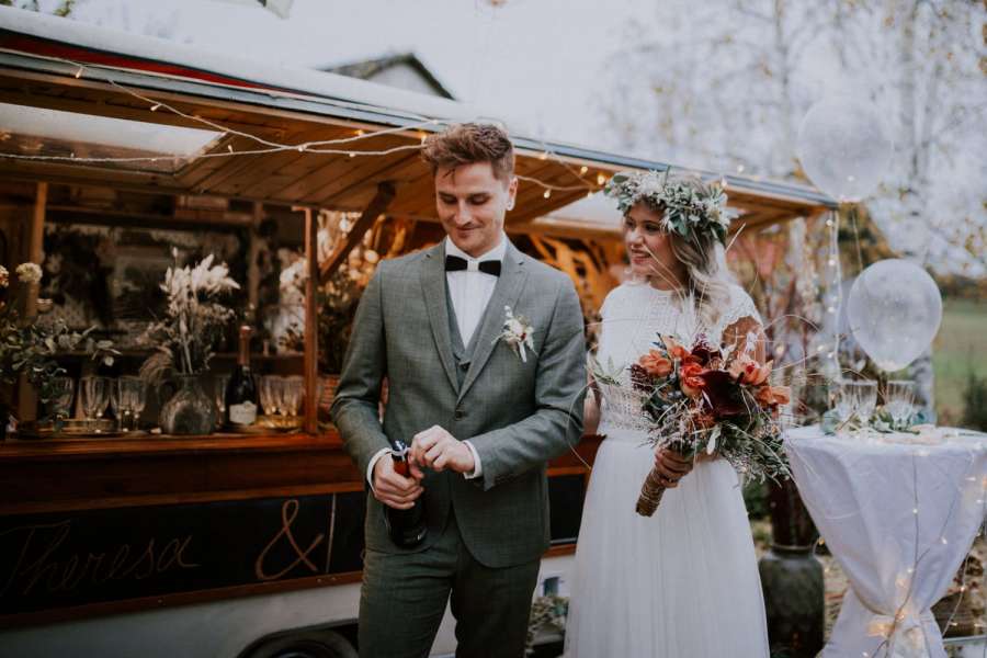 Bis zu 200 Personen Servieren wir frisch gekühlten Prosecco auf Wunsch gerne auch Kaffee dazu. Vor unserem Caravan stehen Stehtische um Euren Gäste zum verweilen einzuladen und viele Erinnerung nach eurer Trauung zu knipsen.