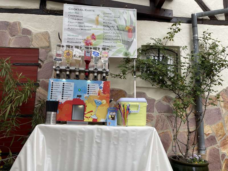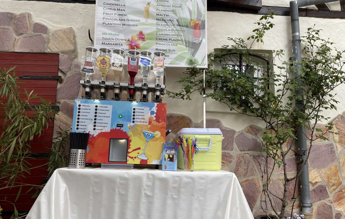 Du hast keine Arbeit mit der Versorgung deiner Gäste, das übernimmt unser Automat für dich. Ein einfacher Knopfdruck reicht, um den Cocktail zu mixen – kinderleicht! Um die Reinigung kümmern wir uns nach deiner Party. Keine angebrochenen Flaschen die den Schrank verstopfen und keine Massen an Saftpackungen die 2 Jahre im Keller rumstehen.