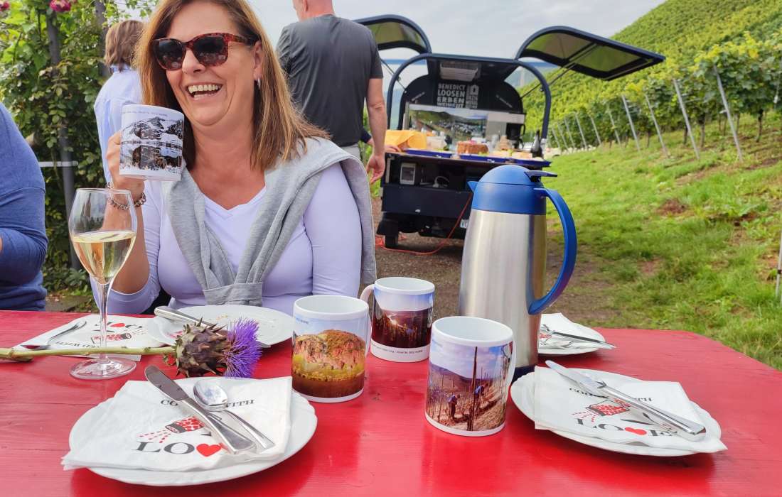 Vino im Wingert oder eine private Weinbar am Wunsch-Ort: Wir vom WeinGut Benedict Loosen Erben bringen Lebensfreude auf drei Rädern