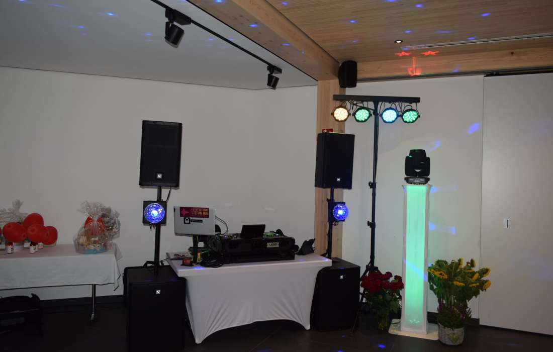 Von mir gibt es alles aus einer Hand. Vom DJ an der Hochzeit über die Technik, bis hin zur Ambientenbeleuchtung. Kein wildes geblinke der Beleuchtung. Die komplette Technik wird von mir gestellt, aufgebaut und auf die Wünsche des Brautpaares und der Location eingestellt. Nichts wird dem Zufall überlassen. Sollte die Technik doch mal streiken, ist auch entsprechender Technikersatz vorhanden und binnen kürzester Zeit wieder aufgebaut und betriebsbereit.