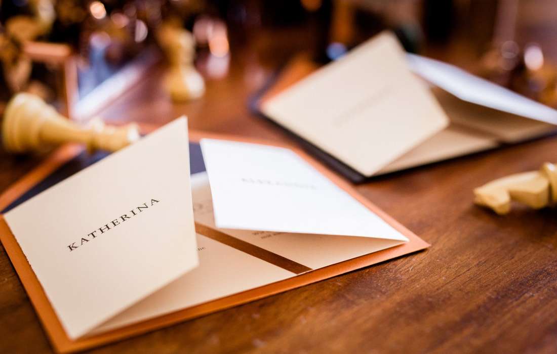 Dieses Designkonzept ist die Grundlage für alle Elemente eurer Papeterie, es dient aber auch als Basis für die Arbeit der anderen Dienstleister. Im perfekten Zusammenspiel aus Papeterie, Dekoration und Floristik entsteht so ein einheitliches Design und ein rundes Gesamtbild eurer Hochzeit.