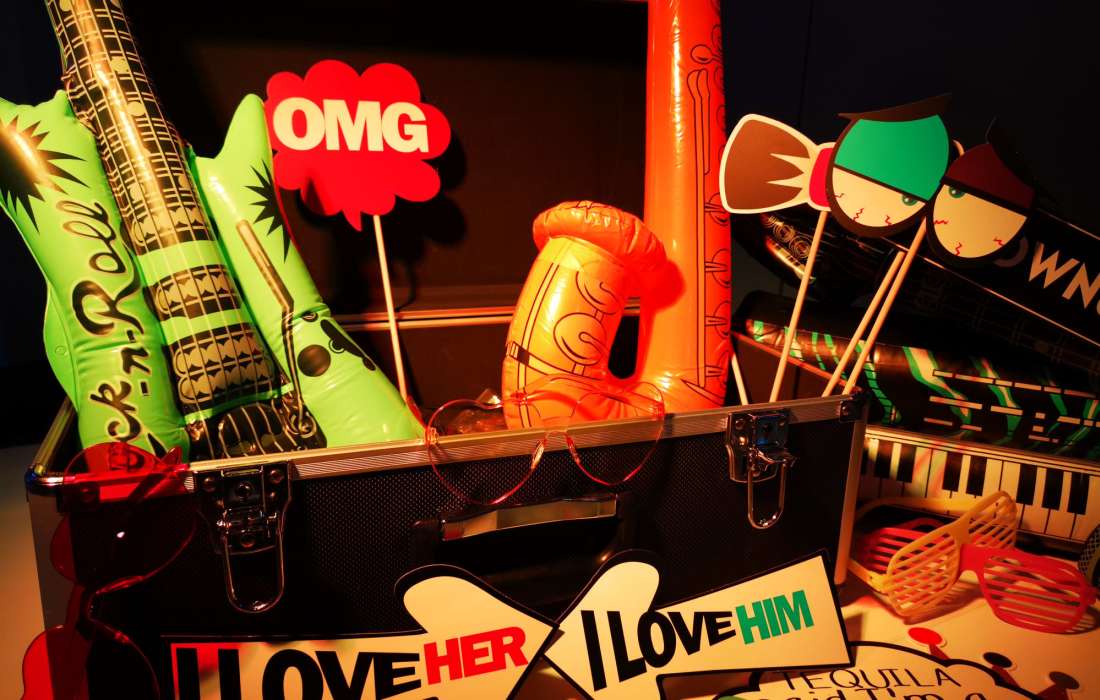 Requisiten: Requisiten machen ihre Fotos ganz besonders! Lustige elegante, verrückte und noch viele andere Fotos können mit den kleinen Hilfsmitteln entstehen. Ob Aufblasbare Instrumente, Sonnenbrillen in jeglichen Farben, Halsbänder, Schilder, Masken und vieles mehr..
