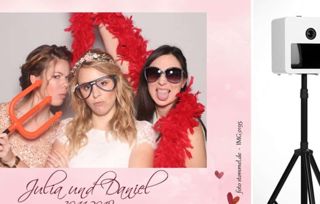 Unsere FotoBoxen produzieren Fotos, Videos, Gifs und Sofortausdrucke in Studioqualität die bei Ihren Gästen einen bleibenden Eindruck hinterlassen. Auf Wunsch kann ich Ihnen dabei viele Services anbieten: ganz individuell gestaltete Drucklayouts mit 1 bis 4 Fotos, wechselnde Hintergründe: dank Greensreen-Technologie, Druckflatrate mit Highspeed Drucker, Spiegelreflexkamera mit Studioblitz, eine sofortige Nachdruckmöglichkeit, ein Sofortversand der Fotos aufs Smartphone Ihrer Gäste und außerdem eine schöne Online-Bildergalerie für Sie und Ihre Gäste.