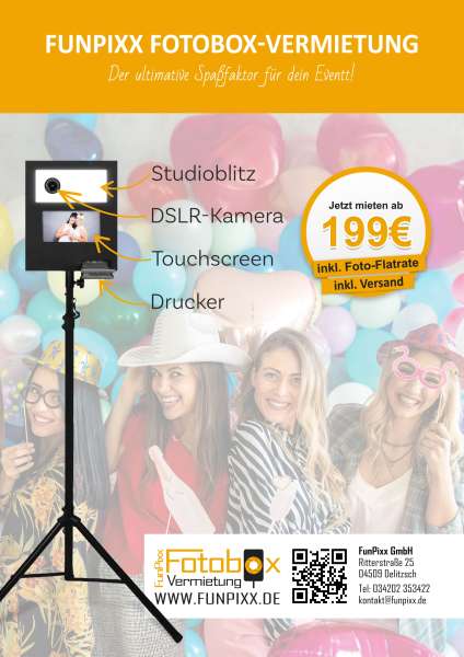 Die FunPixx Fotobox ist der ultimative Spaßfaktor für dein Event! Miete unsere Fotobox zur Selbstabholung in Delitzsch.