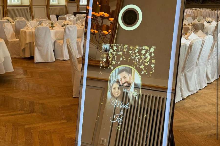 Unsere elegante Fotospiegel, Fotobox bringt Spaß, Stil und unvergessliche Erinnerungen auf eure Hochzeit. Mit Sofortdruck, individuellen Fotovorlagen und witzigen Requisiten sorgen wir für Unterhaltung bei Groß und Klein.