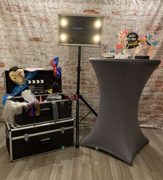 Unsere Photobox garantiert Spaß und gute Unterhaltung auf jeder Feier, egal ob Geburtstag, Firmenevent oder Hochzeit. Die Photobox ist mit einer DSLR Kamera, Tablet inklusive Photobox-Software und einem professionellen Fotodrucker ausgestattet. Ein Koffer mit verschieden Requisiten und Verkleidungen steht ebenfalls zur Verfügung. Zusätzlich kann auch ein Fotohintergrund dazu gebucht werden. Alle Bilder werden auf einem USB-Stick gespeichert und Ihnen zur Verfügung gestellt.