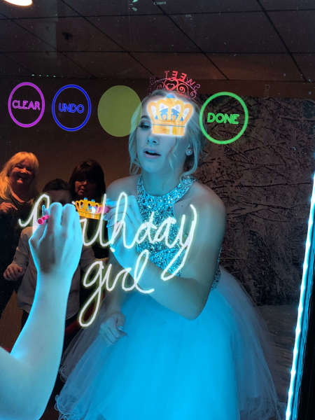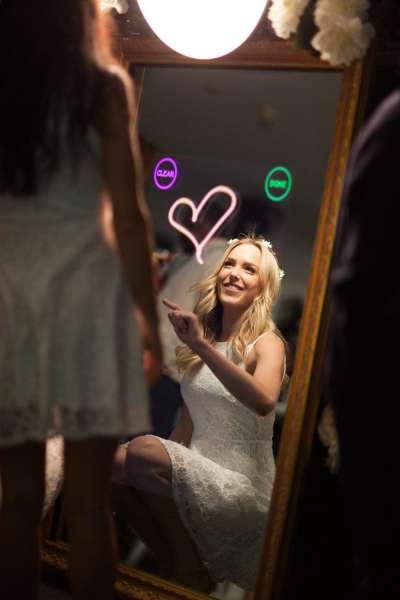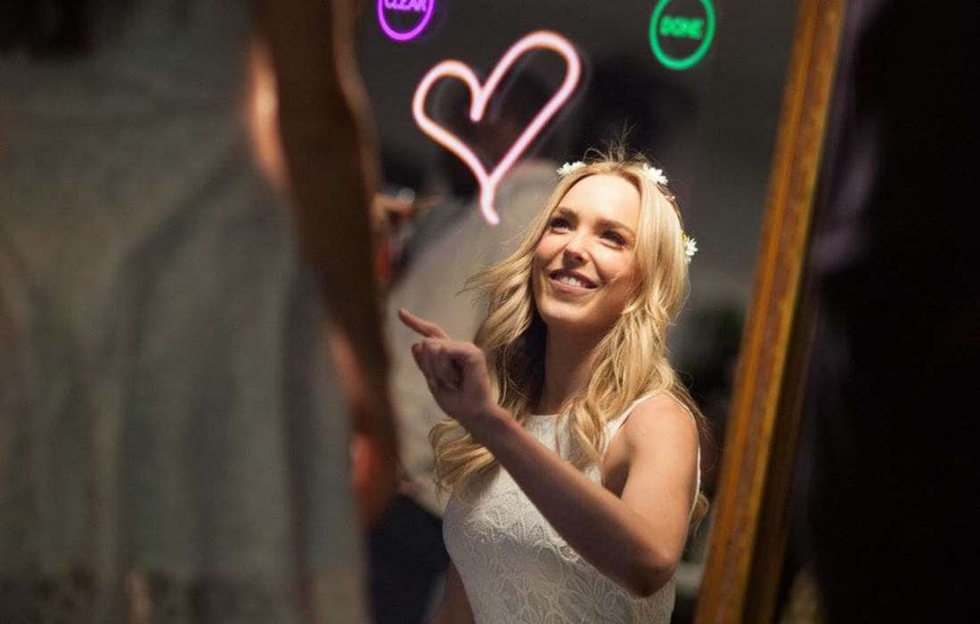 Fotoboxen kennt man. Meist sehen sie optisch nicht schön aus und sind in den Funktionen eingeschränkt. Fotos machen und drucken. Das wars in den häufigsten Fällen, wenn überhaupt Fotoausdrucke mit angeboten werden. Und eine Rückwand oder Dekoration vermisst man gänzlich. Nicht so mit dem Wunderspiegel!