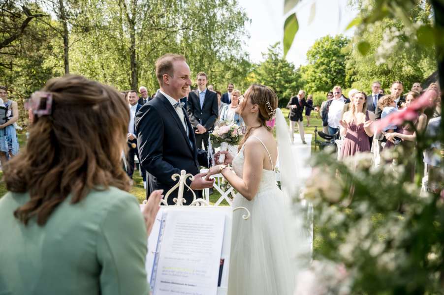 was bedeutet: freie Songauswahl, eigene Rituale, die extra für euch gestaltet und erfunden werden. Detailverliebtheit von A-Z, vom Einzug bis hin zur Frage, ob ein Auszug auch anders als mit Seifenblasen und Wedding Wands gestaltet werden kann.
