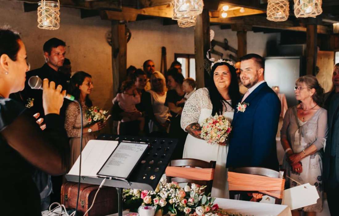 Liebe Dina! Einfach nur Wow. Vielen Dank für die wunderschöne Rede. Sie war so individuell und liebevoll gestaltet. Wir danken dir von Herzen liebe Dina. Du hast unseren Tag einfach perfekt gemacht. Und deine Lieder waren natürlich der Wahnsinn. Selbst bei den gestandenen Männern sind ein paar Tränen geflossen - so eine warme und gefühlvolle Stimme habe ich noch nie gehört. Wir sind so froh, dass wir dich gefunden haben und könne dich wirklich aus ganzem herzen weiterempfehlen. Die ganzen Bewertungen auf goole und deiner Website stimmen zu 100 Prozent. Alles Liebe für Dich, Sonja und Markus