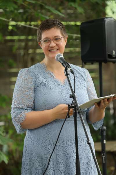 Liebe Katharina, vielen vielen Dank für Deine wunderbare Traurede! Ich habe Katharina auf einer anderen Hochzeit gesehen & obwohl ich das Paar kaum kannte, war ich durch Katharinas Rede zu Tränen gerührt, sodass die Entscheidung Katharina als unsere Traurednerin zu gewinnen ganz leicht fiel. Sowohl wir, als auch unsere Gäste, waren von der Traurede begeistert, aber auch von Katharinas ruhigen sympathischen Art, die bei der ganzen Aufregung an so einem großen Tag genau das Richtige war. Wir können Euch Katharina also wärmstens empfehlen. Auch die Vorbereitungen und die Kommunikation mit Katharina lief wunderbar. Sie ist zuverlässig, steht bei Fragen immer zur Verfügung, hat tolle Tipps und es macht einfach Spaß mit ihr zu arbeiten.