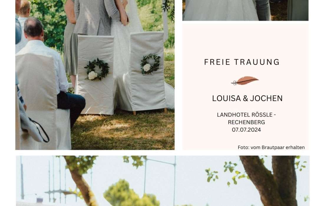 Worte, die so gewählt und gesprochen werden, dass sie die Seele berühren und die Liebe zwischen zwei Menschen zum einzigartigen Ausdruck bringen, wie man sie kaum ein anderes mal hört. Sie bleiben Euch sehr lange in Erinnerung und in allen Herzen der Gäste– sie bleiben fürs Leben!