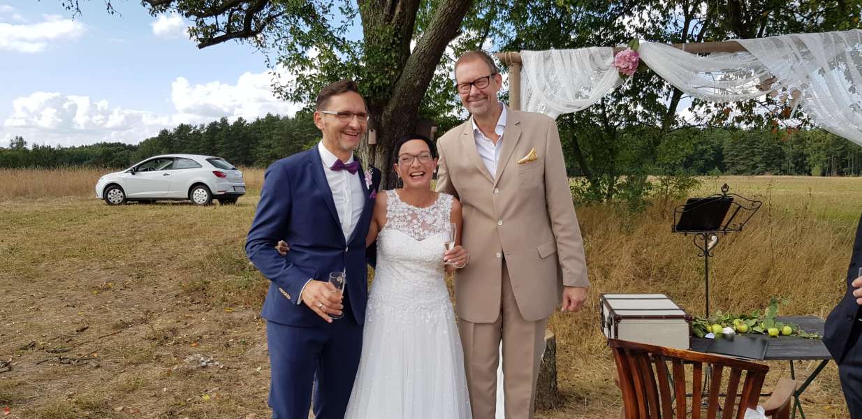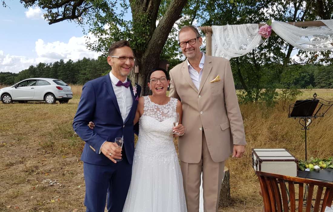 Seit einiger Zeit beschäftige ich mich mit den Freien Trauungen. Ich sehe sie als tolle Alternativen zu standesamtliche Trauungen, bei denen man einen engen Zeitplan einhalten, Glück mit der Standesbeamtin oder dem Standesbeamten haben und sich eigentlich beeilen muss, weil das nächste Paar schon draußen wartet. Nachdem ich die Hochzeit meiner Tochter gestalten durfte, bin ich gänzlich „auf den Geschmack“ gekommen und führe nun schon seit geraumer Zeit Freie Trauungen durch. Ich bin überzeugt davon, dass der schönste Tag für zwei Menschen gerade durch solch eine individuelle Trauung zum Höhepunkt ihrer Liebe werden kann.