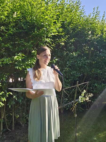 Als lebensfrohe und empathische Person würde ich mich freuen, eure Trauung nach euren Wünschen zu planen und durchzuführen!