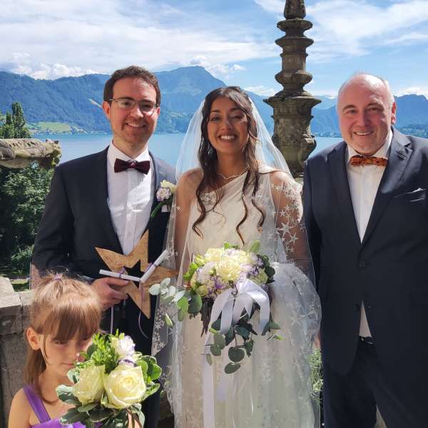 PS: Ich bin gerne auch unterstützend als Hochzeitsplaner oder Tätschmeister/Zeremonienmeister am grossen Tag für euch da. Die Zeremonie dauert zwischen 30 oder 45 min, ihr könnt frei wählen. Etwas Besonderes ist mein Deluxe-Paket, das ich euch gerne präsentiere beim unverbindlichen Kennenlerngespräch.