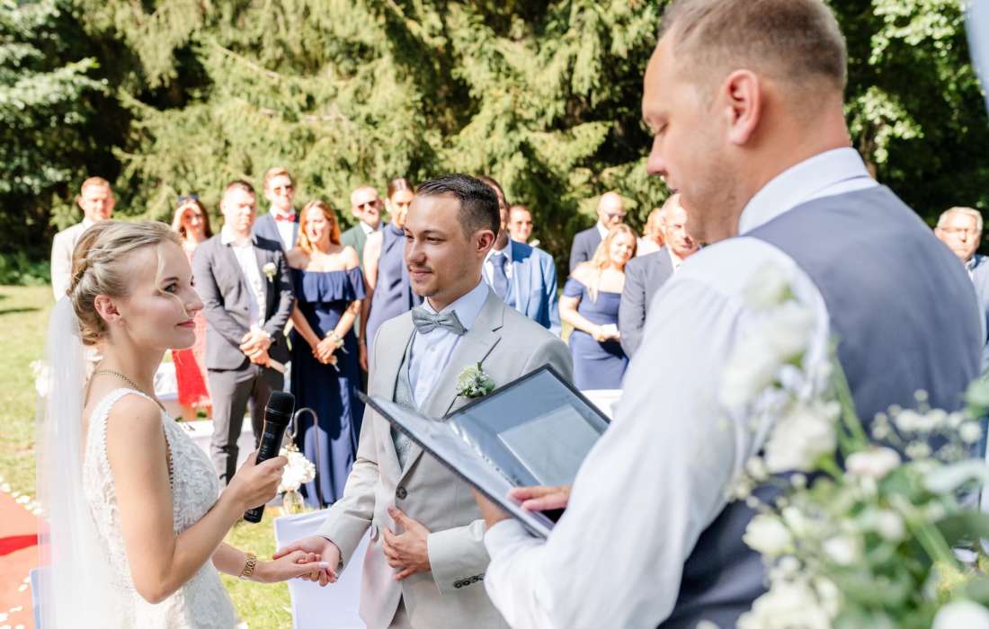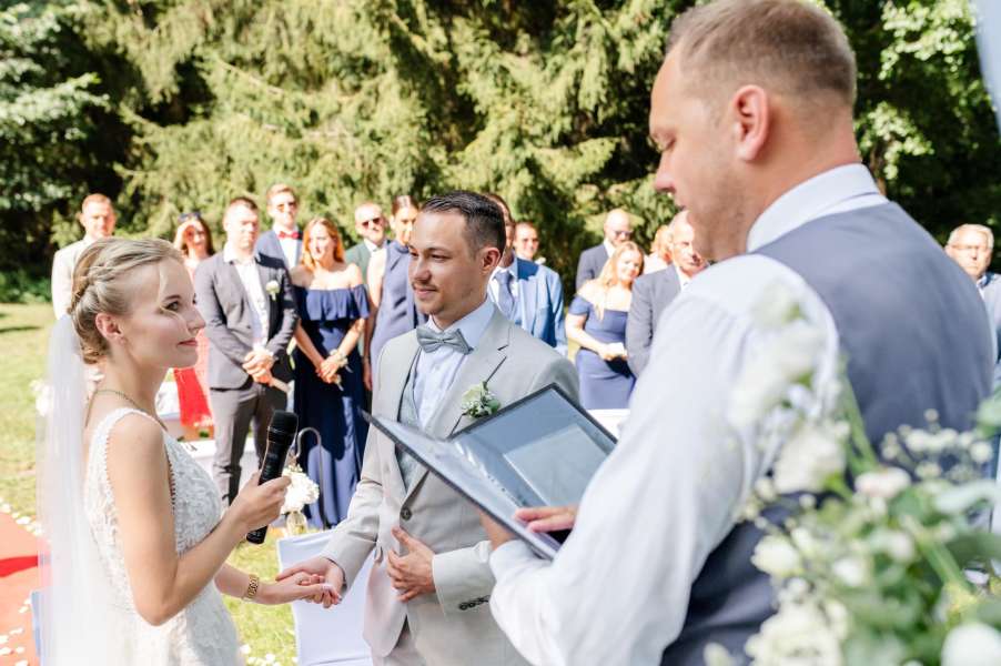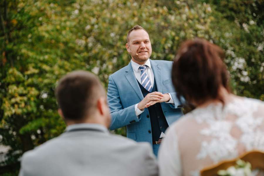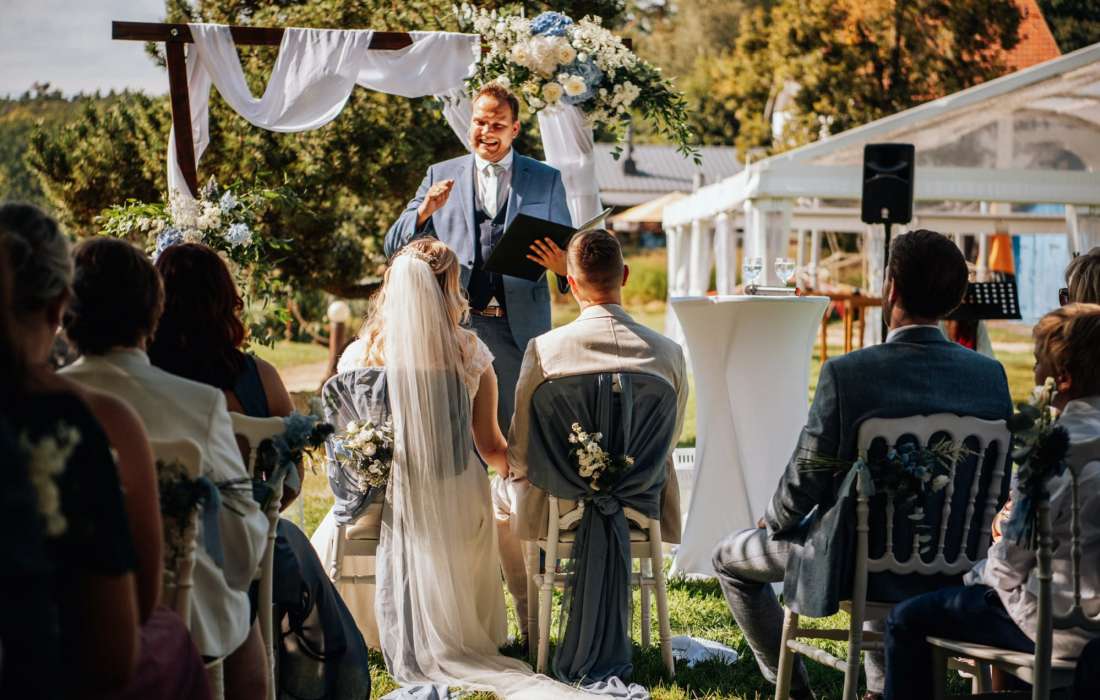 Wir waren begeistert! Marcel hat eine großartige, sehr persönliche und humorvolle Traurede für uns geschrieben und eine freie Trauung für unsere Hochzeit durchgeführt. Aber die Rede selbst war nur ein kleiner Teil der gesamten Dienstleistung. Zu Beginn gab es ein unkompliziertes Treffen zum Kennenlernen. Einige Wochen später gefolgt von einem mehrstündigen Traugespräch, in dem wir Marcel unsere ganz persönliche Geschichte, von der ersten Kontaktaufnahme bis zur Verlobung, erzählen konnten. Das Traugespräch hat sich nicht wie ein 0815-Interview angefühlt, sondern war sehr persönlich. Darüberhinaus hat Marcel uns einige Kontakte zu verschiedensten Dienstleistern (Floristik, Sängerin, Torte) vermittelt und uns immer wieder für die Hochzeitsvorbereitungen Hilfe angeboten. Marcel ist nicht nur überaus sympathisch, sondern auch sehr professionell und zuverlässig. Absolute Empfehlung! Und direkt an dich Marcel: Nochmals vielen Dank für Alles!