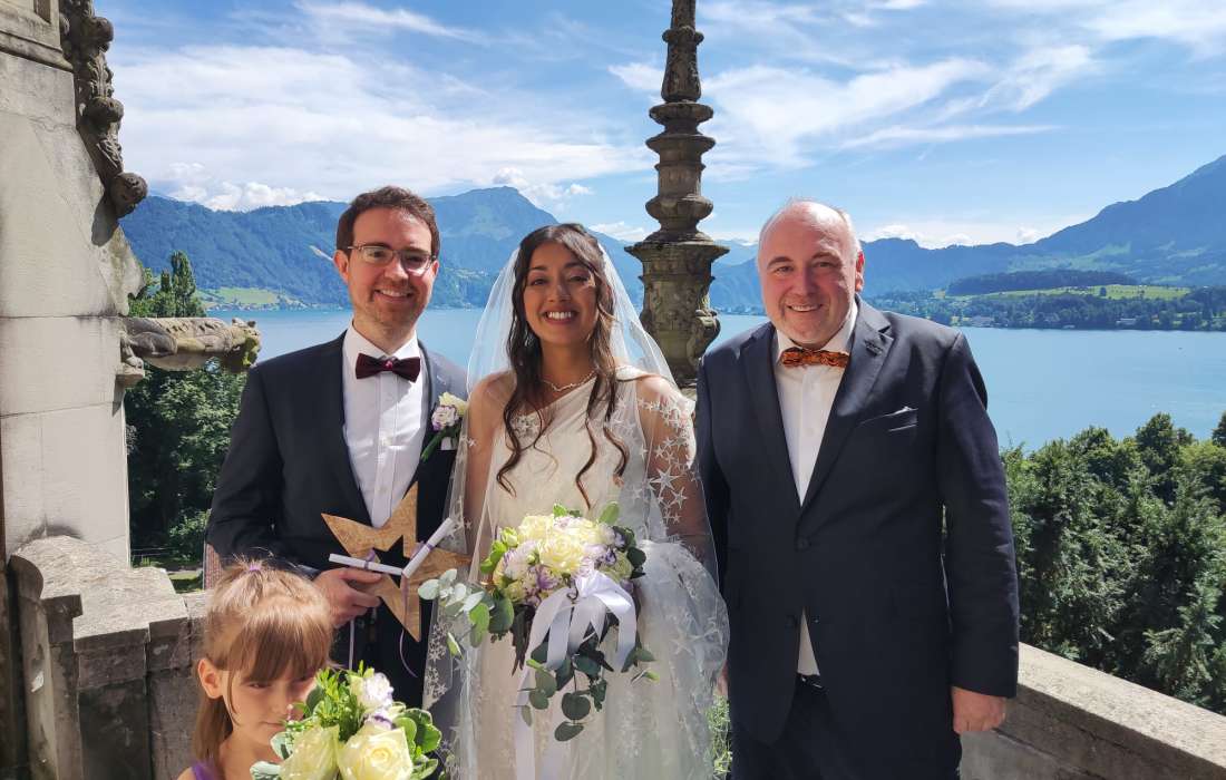 PS: Ich bin gerne auch unterstützend als Hochzeitsplaner oder Tätschmeister/Zeremonienmeister am grossen Tag für euch da. Die Zeremonie dauert zwischen 30 oder 45 min, ihr könnt frei wählen. Etwas Besonderes ist mein Deluxe-Paket, das ich euch gerne präsentiere beim unverbindlichen Kennenlerngespräch.