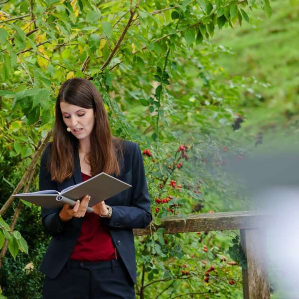 Ich bin nicht die kitschige Romantikerin, sondern eine Eventmanagerin mit viel Einfühlungsvermögen, Sinn für Humor und Leidenschaft für Events. In meiner Rede werde ich Euch daher nicht mit standardisierten Liebesphrasen langweilen, sondern versuchen, Euch und Eure Gäste zu überraschen, emotional zu berühren und Eure Familie sowie Freunde in die freie Trauung mit einzubeziehen. Ich werde mein allerbestes geben, um meine Rede für Euch unvergesslich zu machen.