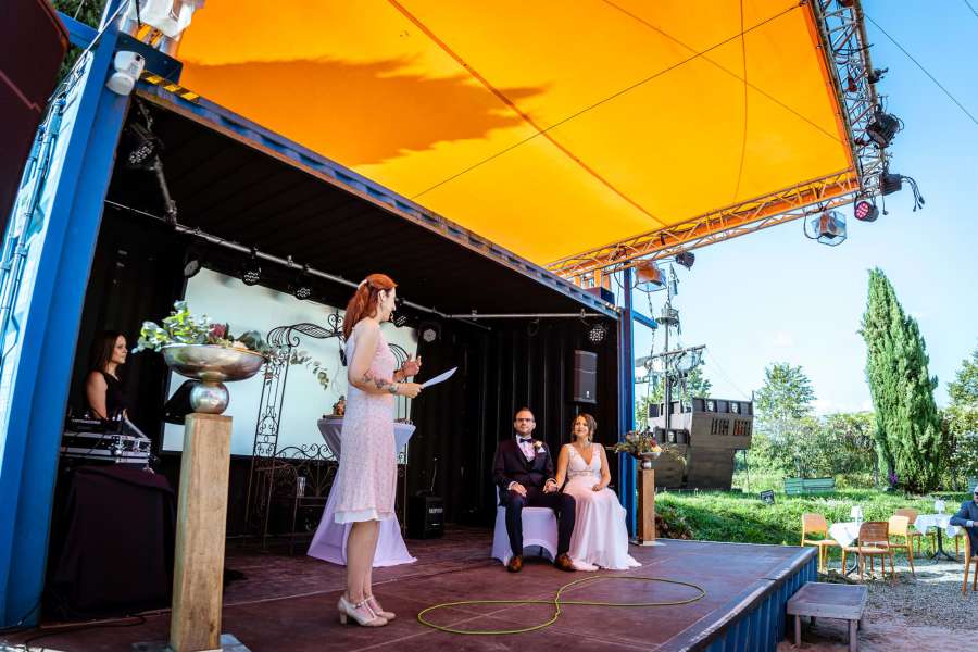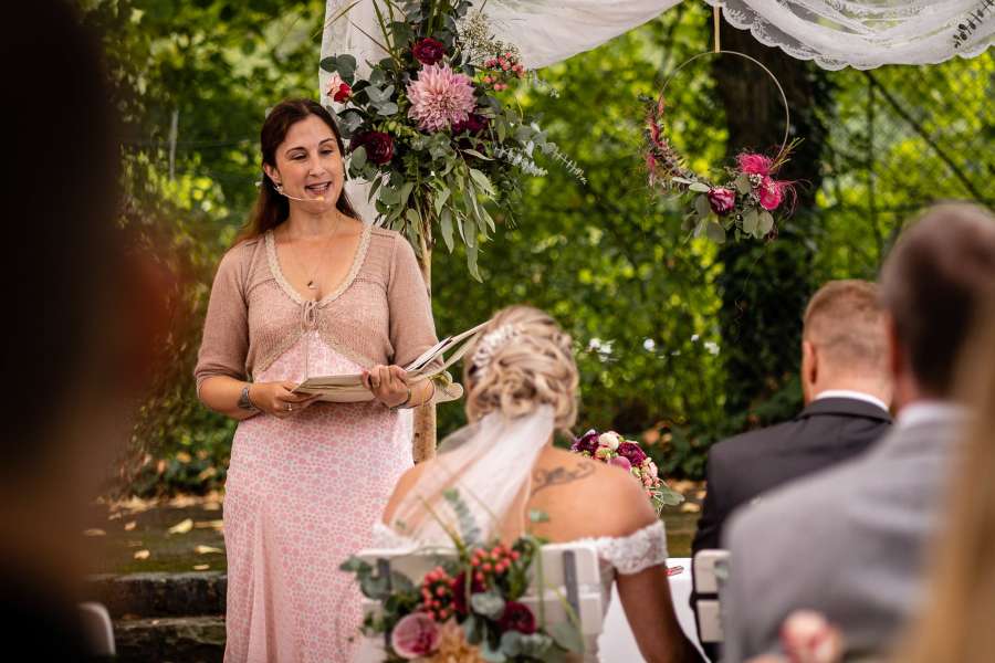 Liebe Barbara Christina, die Zeremonie mit den emotialen Worten und Beiträgen war so warmherzig und perfekt auf uns abgestimmt, dass der Tag für unsere Gäste und uns unvergesslich bleibt. Vielen Dank dafür und bleib so wie du bist! LG Sabrina und Sascha