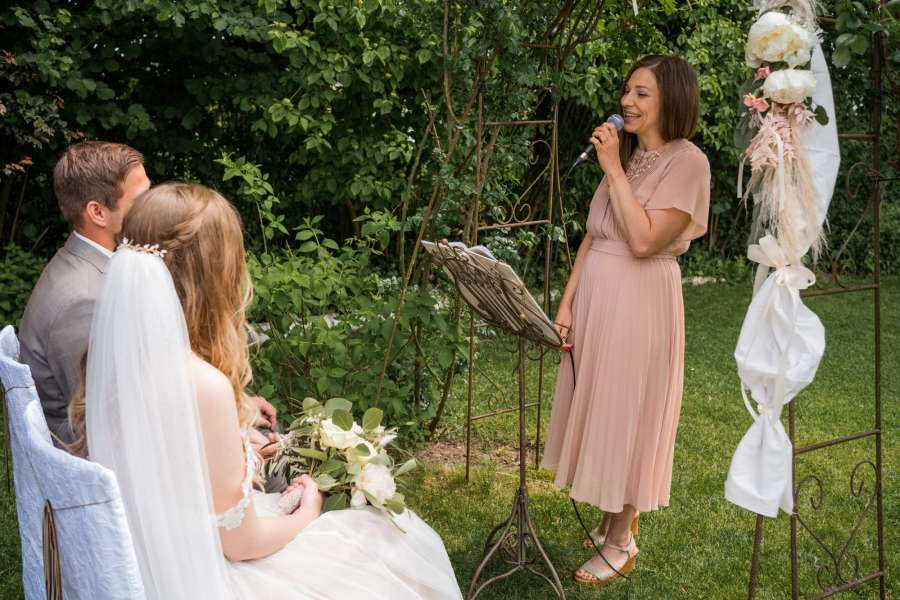 Weil ich euch als Mensch begegne – nicht nur als Rednerin. Bei mir geht es nicht um Standardphrasen, sondern um eure ganz persönliche Geschichte: Wie habt ihr euch kennengelernt? Was habt ihr zusammen erlebt? Welche Momente bringen euch immer noch zum Lachen oder zum Strahlen? All das fließt in eure Zeremonie ein. Dabei darf es gerne emotional werden, mal humorvoll, mal tiefgründig – so, wie es zu euch passt.