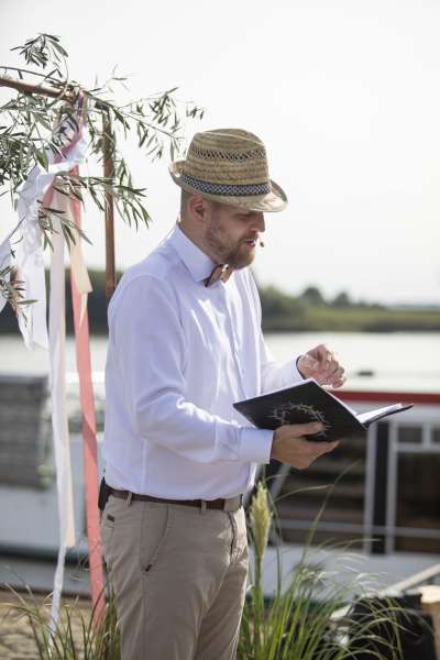 Ben ist ein großartiger Trauredner. Er hat die Rede perfekt auf uns zugeschnitten und sich eine schöne Rahmenstory ausgedacht, die wirklich nur auf uns passte. Der Text hatte viel Tiefgang und er hat alles sehr lebhaft vorgetragen, sodass man Lust bekommt weiter zu lauschen. Wir würden ihn jederzeit wieder buchen.