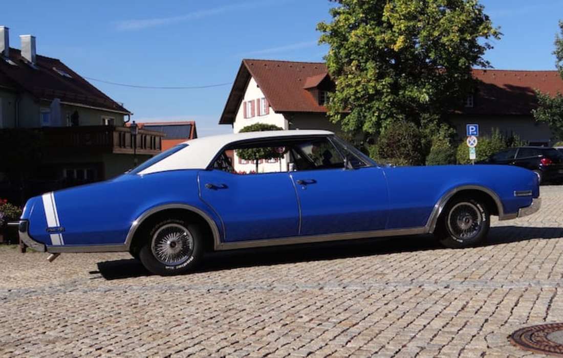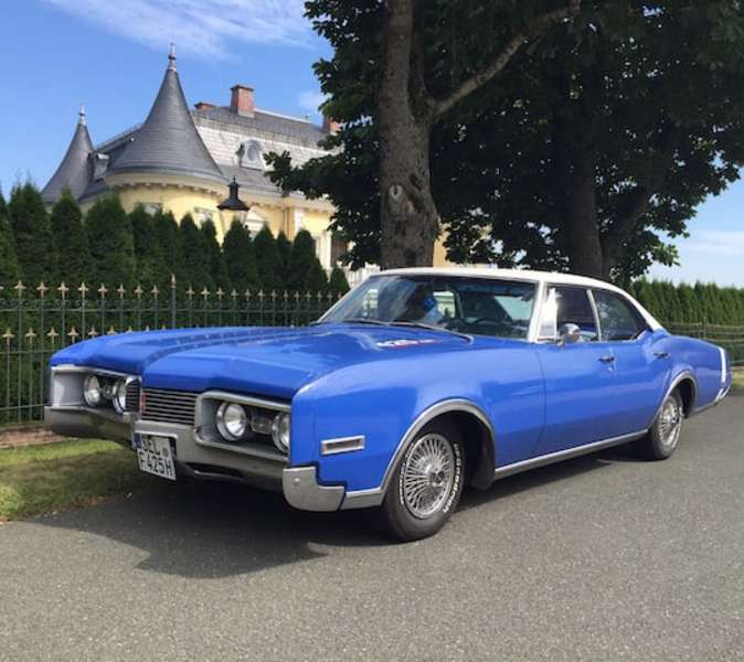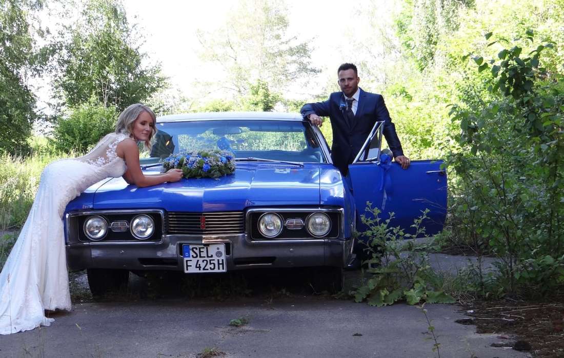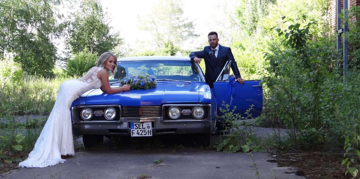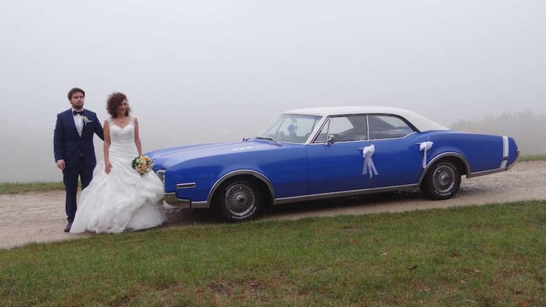 Oldsmobile Delta 88, mit riesigem 7 Liter V8-BIG-Block-Motor, leise säuselnd aber bei Bedarf kraftvoll wummernd, zugelassen für 6 Personen. Das charaktervolle Hochzeitsauto.
