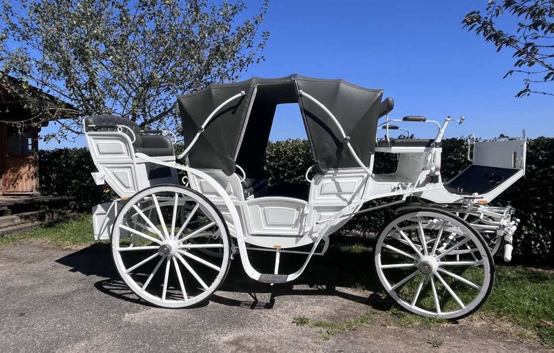 Wir holen Euch vor dem Standesamt, von der Kirche oder einem anderen beliebigen Ort mit unserer wunderschönen Hochzeitskutsche ab. Anschließend könnt Ihr eure Vermählung bei einer Kutschfahrt genießen.
