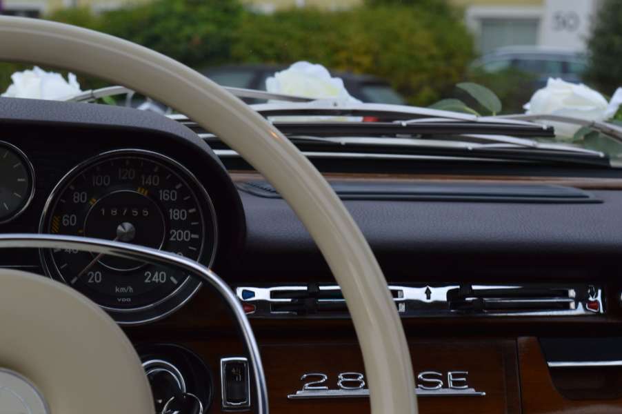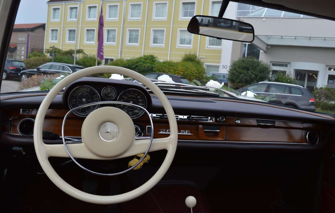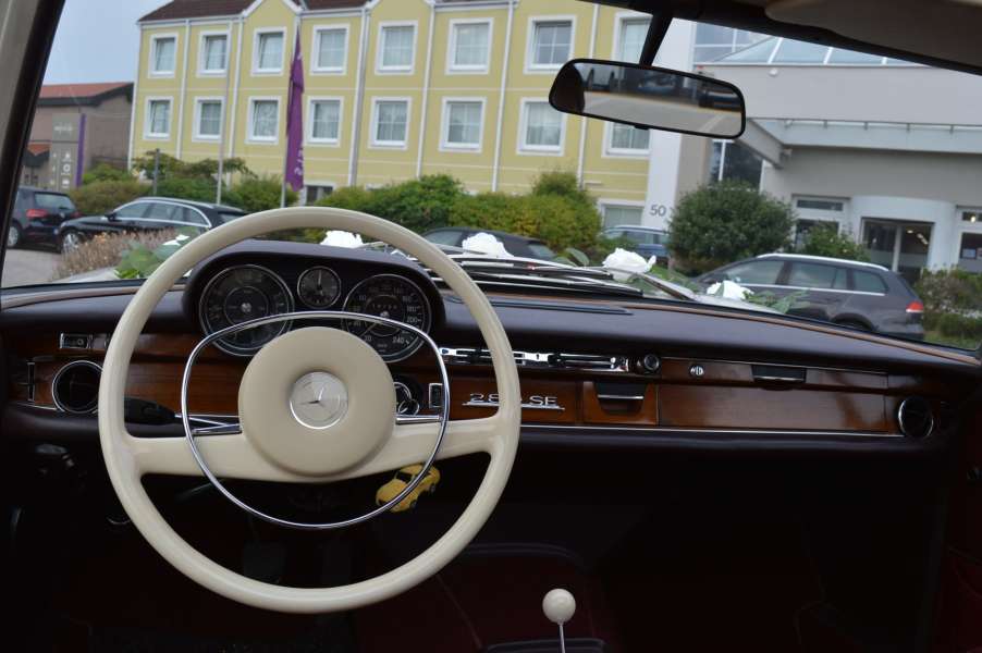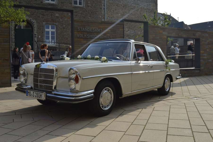 Wir bieten u.a. einen frisch restaurierten Mercedes Benz 280 SE W108, Bj 1969, für Hochzeitsfahrten mit Chauffeur an.