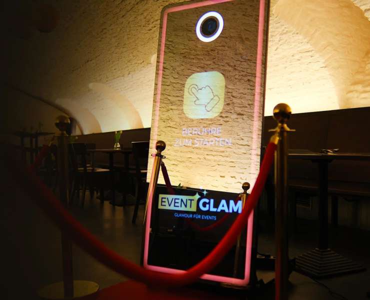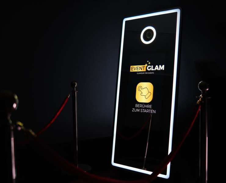 Event Glam bietet mit dem interaktiven Fotospiegel ein stilvolles Highlight für eure Hochzeit – unvergessliche Fotos, sofort gedruckt & perfekt inszeniert!