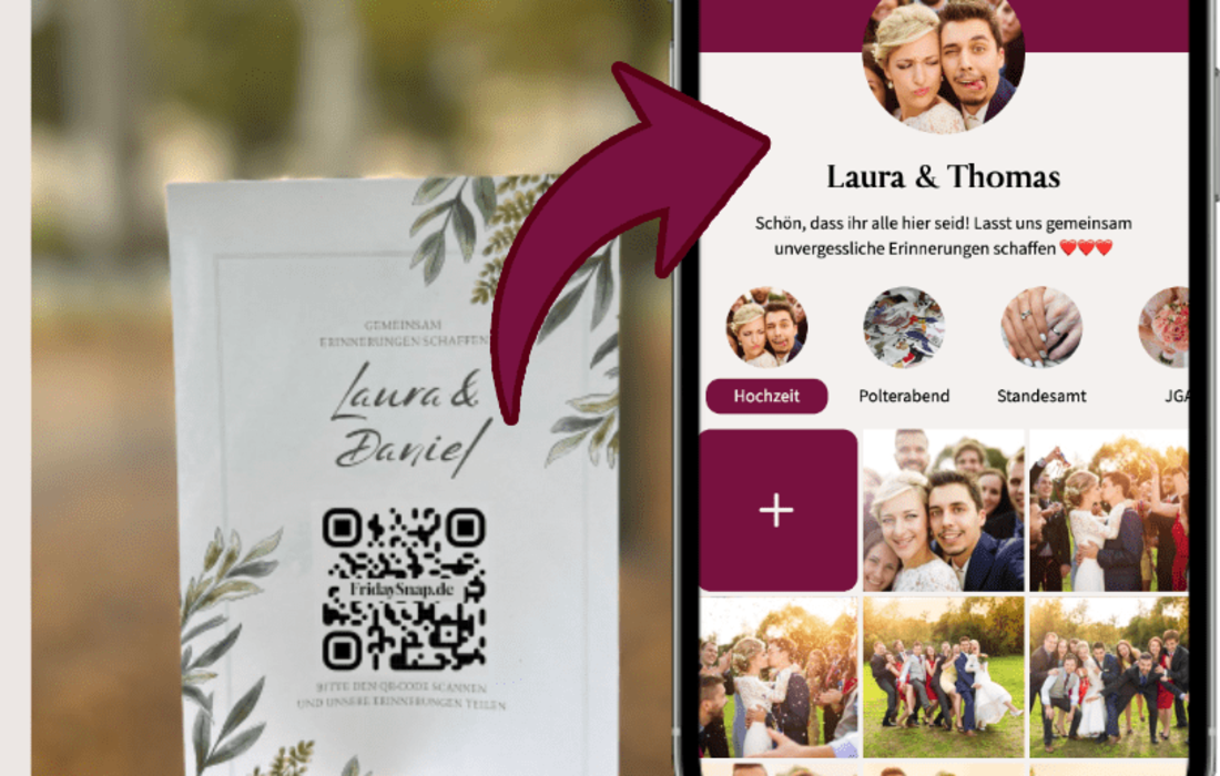 FridaySnap bietet eine moderne Lösung, um Fotos von Hochzeiten, Partys und Events ganz einfach online zu sammeln.