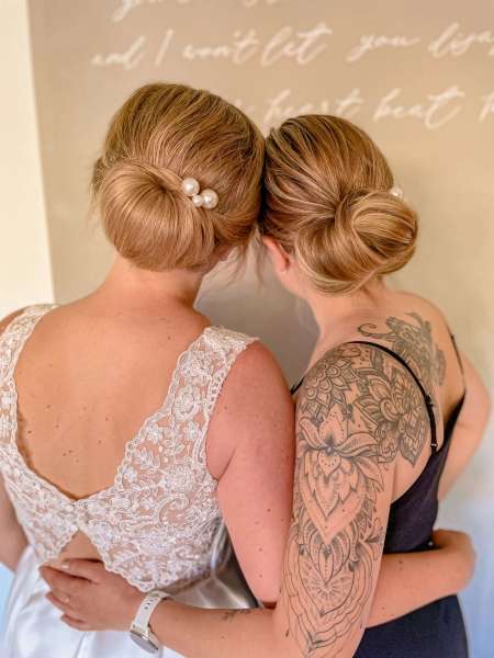 Ich habe am 13.5.23 geheiratet und wurde von Madlen den Tag über begleitet. Morgens eine wunderschöne Frisur und ein leichtes make up zum Standesamt und dann später eine bombastische steckfrisur und ein mega schönes make up für die Kirche. Ich bin generell kein make up Mensch aber Madlen hat ein super Gespür für sowas. Ich habe mich nicht eine Sekunde verkleidet gefühlt.