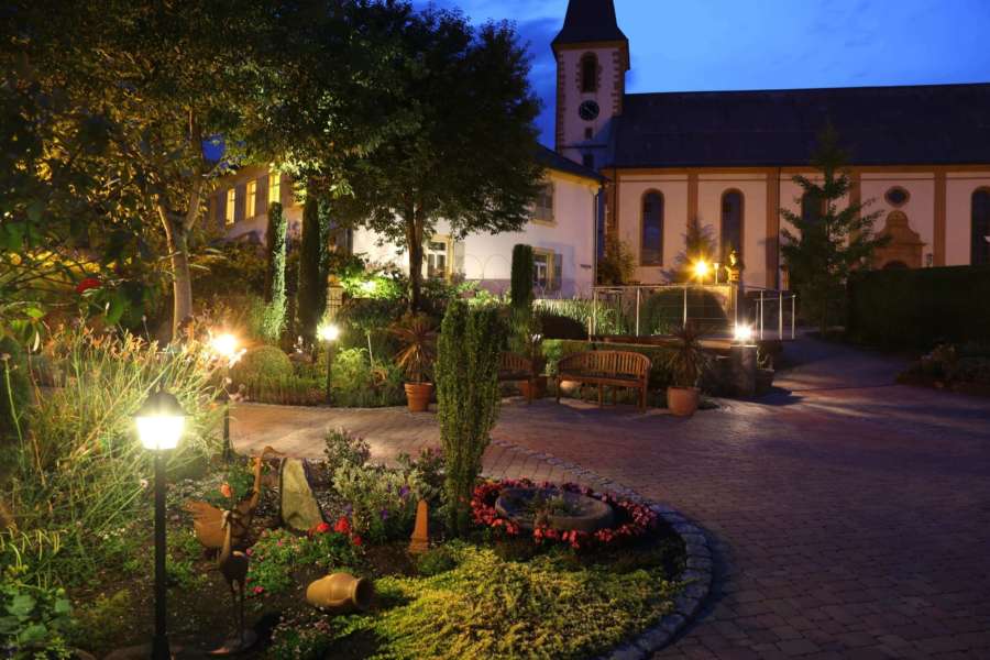 In unserem romantisch gestalteten Garten mit ausgewählten heimischen Pflanzen und einem liebevoll gestalteten Teich mit Holzterrasse können bis zu 200 Gäste unter freiem Himmel feiern. Bei Bedarf können Eventzelte aufgestellt werden. Zu späterer Stunde können Sie die stimmungsvolle Gartenbeleuchtung genießen.