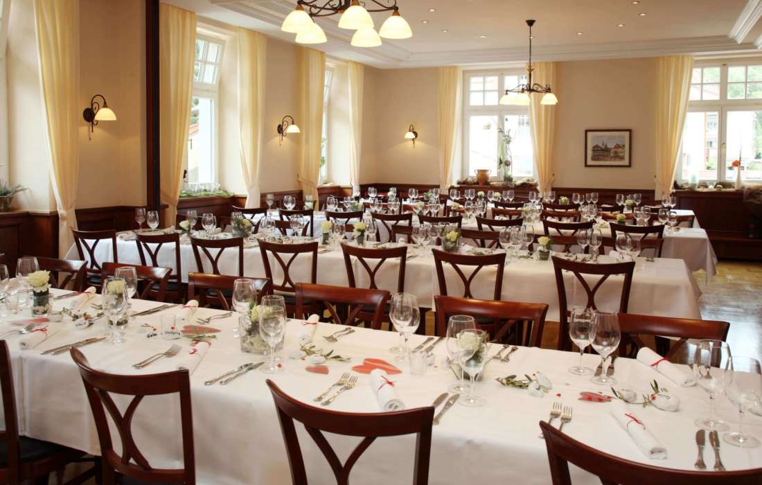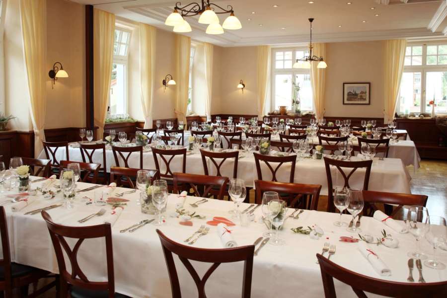 Der lichtdurchflutete Fest- und Hochzeitssaal ist stilvoll eingerichtet und bietet Platz bis zu ca. 100 Personen. Der Saal lässt sich auch in zwei getrennte Räume aufteilen. Er ist für Hochzeiten und andere Feiern genauso geeignet wie für Tagungen und Konferenzen.