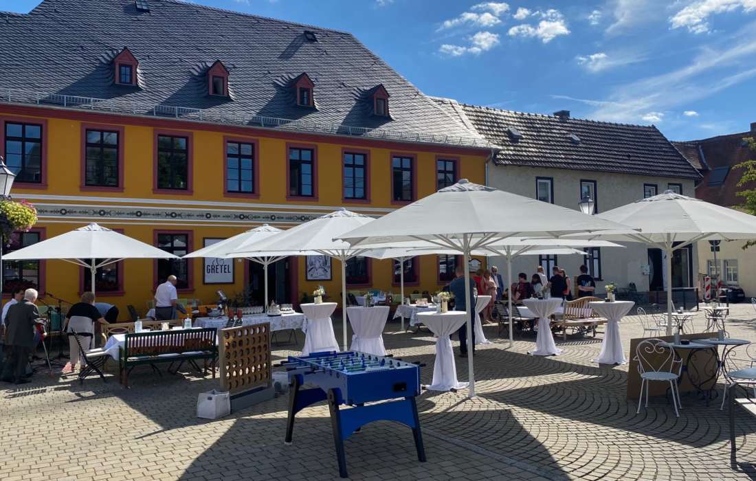Unsere Räumlichkeiten bieten Platz für jede Art von Feier: Im Erdgeschoss können bis zu 100 Gäste unvergessliche Momente erleben, während im ersten Obergeschoss bis zu 50 Personen in einem gemütlichen Ambiente feiern können. Für eine besondere Atmosphäre steht Ihnen unser Gewölbekeller ( Oktave7 ) zur Verfügung, der Platz für bis zu 60 Gäste bietet. Ob mit DJ, Live-Musik oder Ihrer eigenen Playlist – wir gestalten Ihre Feier ganz nach Ihren Wünschen. Zudem sind wir zentral gelegen, auf dem historischen, alten Marktplatz. Das Standesamt befindet sich gegenüber in der alten Hugenottenkirche. Für Übernachtungen, können Sie individuell eingerichtete Zimmer im Hotel zur goldenen Sonne, nur einen Spaziergang entfernt, buchen.