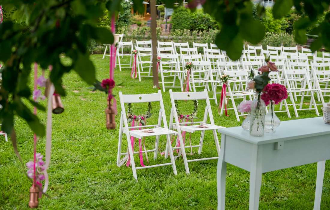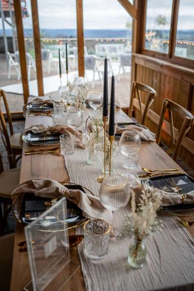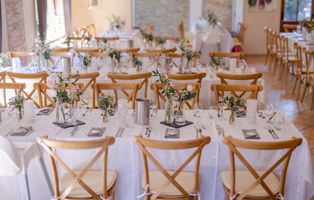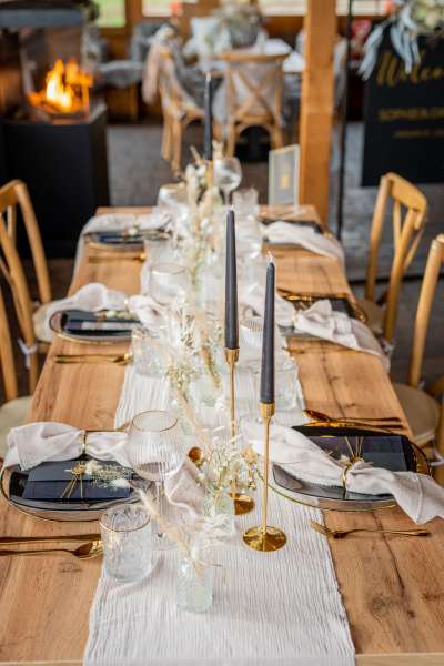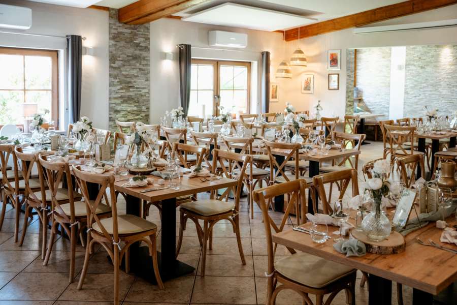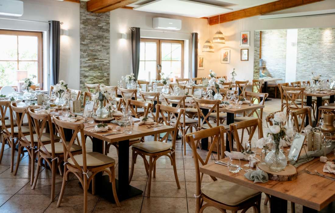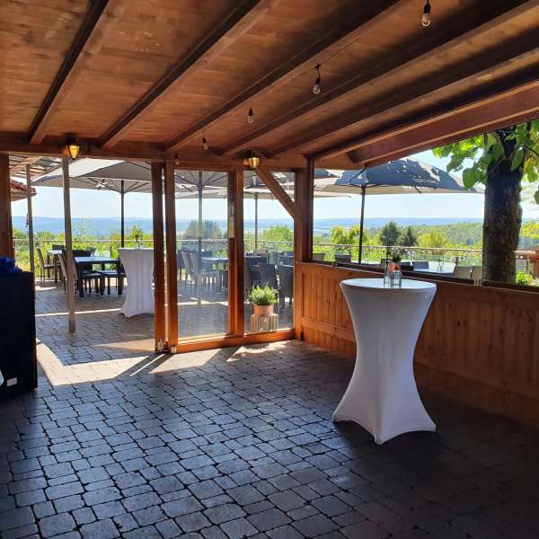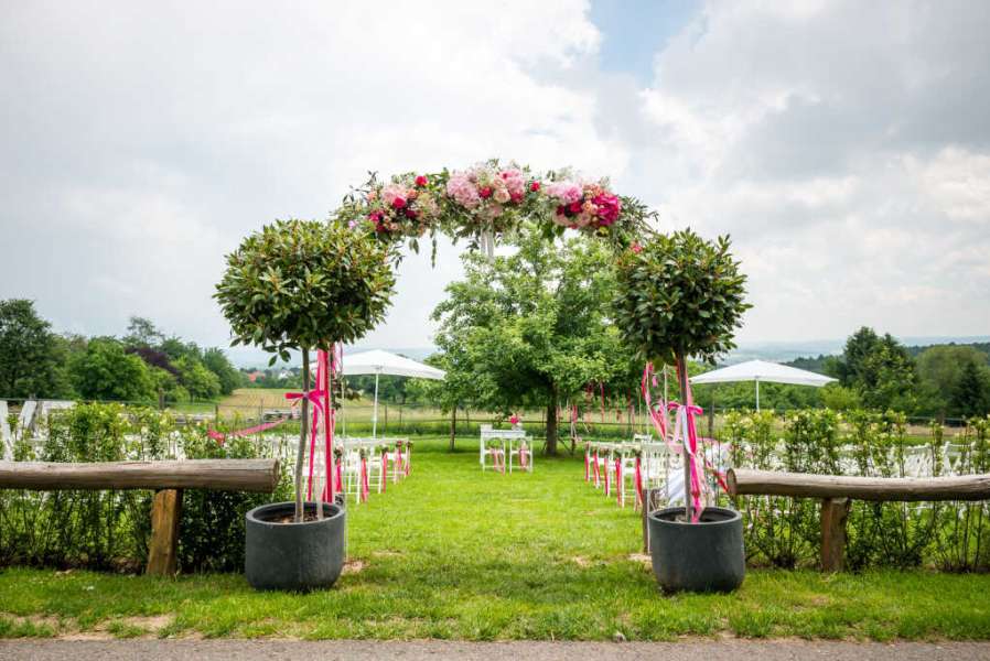 Angefangen von einer freien Trauung auf unserer Trauwiese mit Blick über den Kraichgau, Sektemfang mit Häppchen auf unserer großen Außenterrasse, Dinner im klimatisierten Hauptraum bis hin zum tanzen in die frühen Morgenstunden ohne Sperrstunden in unserem gemütlichen Wintergarten.