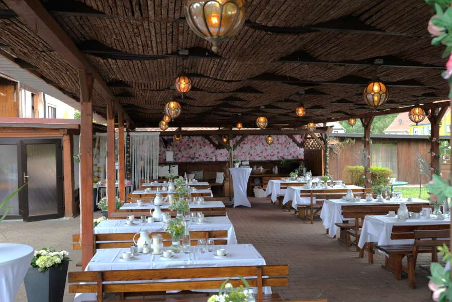 | Erklärung zur Gästezahl | Wir bieten drei Räumlichkeiten zu einem die Kaminstube für Gruppengrößen von 15 bis 40 Personen, denn Wintergarten für 20 bis 50 Personen +Terrasse und Tanzfläche, und der Hauptsaal mit bis 130 Personen uneingeschränkt + Tanzfläche und großem Außenbereich wo auch Freie Trauungen möglich sind. |